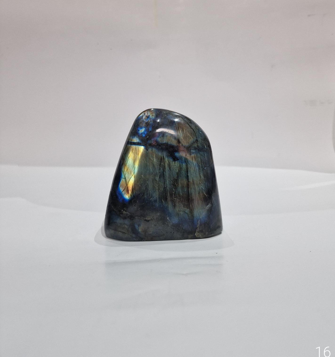 Découvrez la Labradorite “Lueur Sauvage”, une pièce exceptionnelle révélant des reflets dorés, bleutés et orangés qui semblent s’animer selon la lumière. Sa forme libre, légèrement asymétrique, lui donne un caractère authentique et organique, comme taillée directement dans l’énergie des éléments.