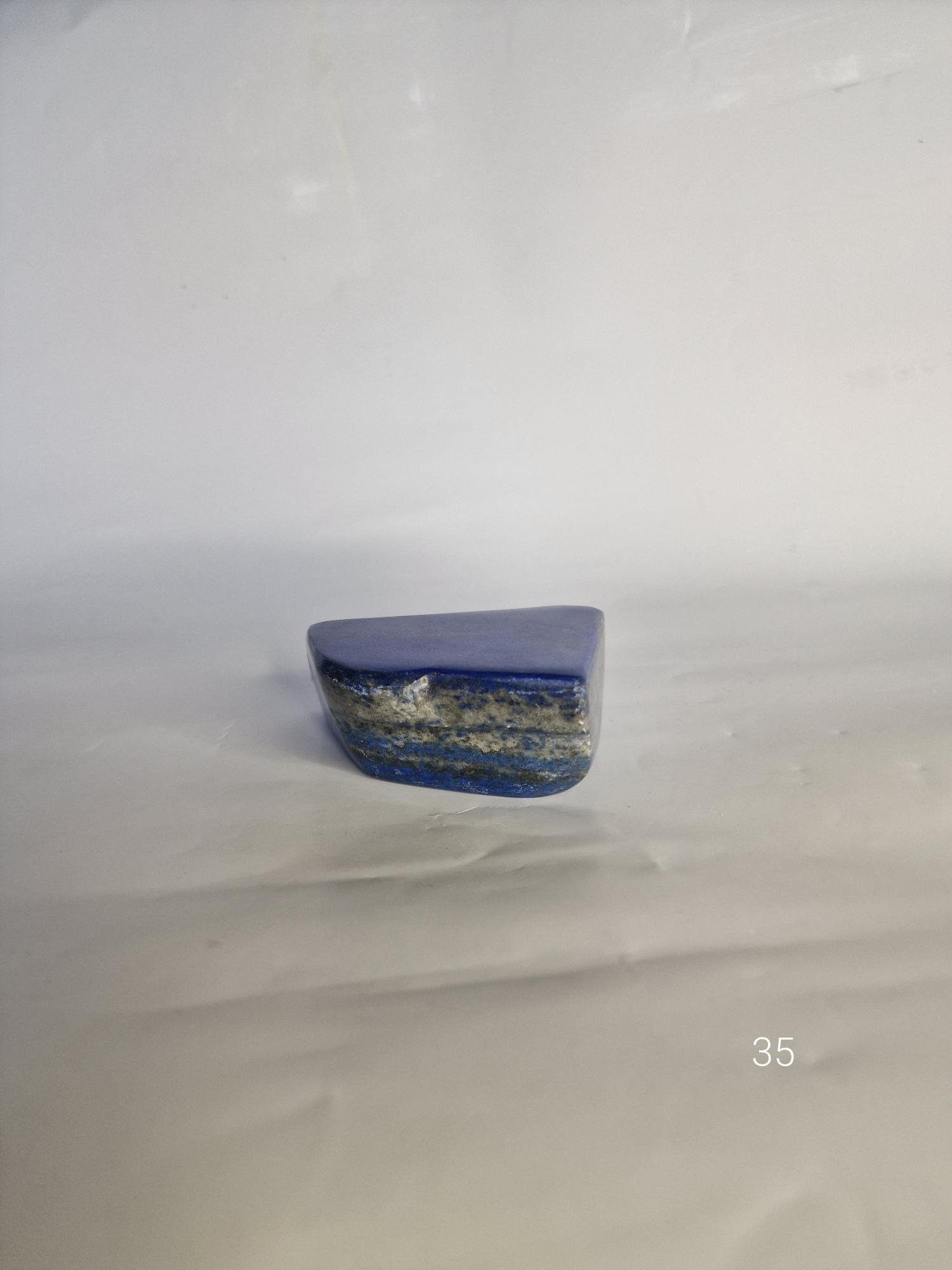 Ce bloc poli de Lapis-Lazuli séduit par son bleu profond et vibrant, traversé de nuances minérales qui lui donnent un charme brut et élégant. Sa forme compacte et sa surface lisse en font une pièce facile à placer, que ce soit sur un bureau, une étagère ou un coin dédié aux pierres naturelles.