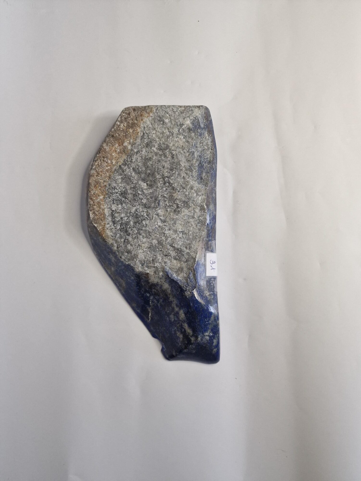 Voici Lame d’Azur, une pièce spectaculaire en Lapis-Lazuli, taillée de manière à évoquer une longue lame minérale. Son bleu profond, presque nocturne, révèle à la lumière des reflets subtils et des veines naturelles qui lui donnent un charme unique et authentique.